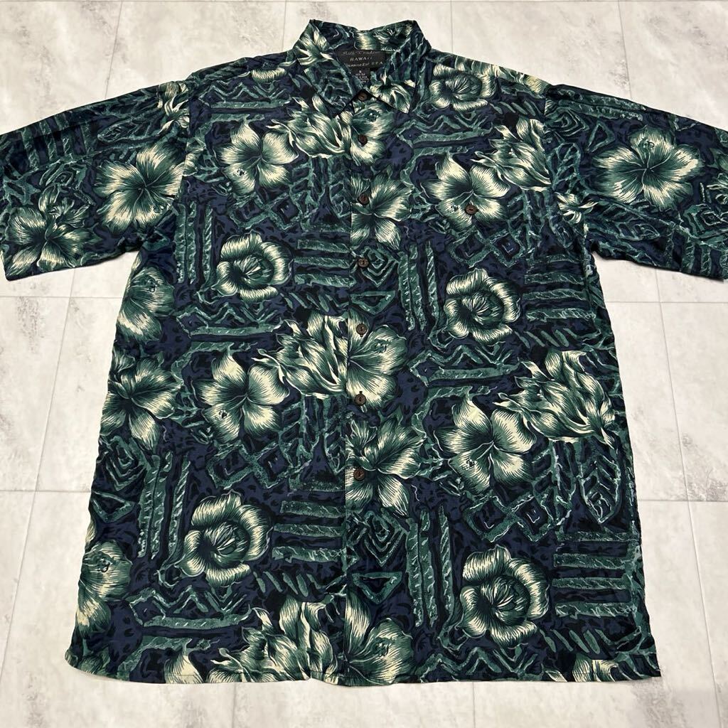 - Silk Traders HAWAII Sunrise Ent U.S.A 総柄 花柄 柄合わせ レトロ アート ビンテージ アロハシャツ SILK100%