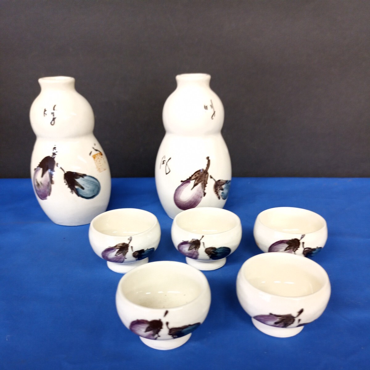 - 昭和レトロ■赤嶺 徳利 盃(お猪口) 茄子 酒器 酒器揃