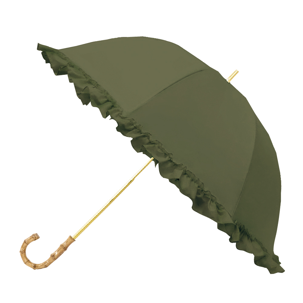 > まるいシルエット 完全遮光 深張り 長傘 晴雨兼用 フリル オリーブ 親骨50cm 広げたサイズ直径77cm コンパクト