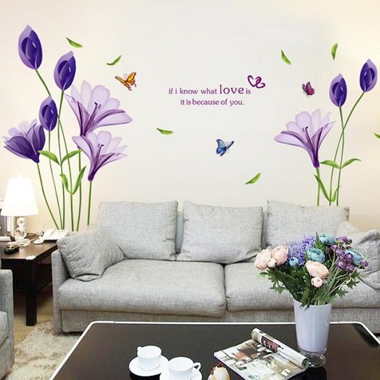 - ウォールステッカー 紫のユリ 花 蝶々 おしゃれ 英文 名言 壁紙シール ラブ はなびら 蕾 ハート 北欧 内装 病院 誕生日 大人 販売店