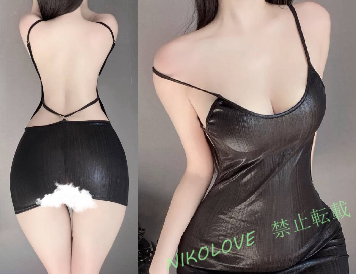 - ☆新品*セクシー**良質*とろみ素材*背中開き*キャミソール*タイト*チュニック*ワンピース*黒*ブラック*メタリック*LF708