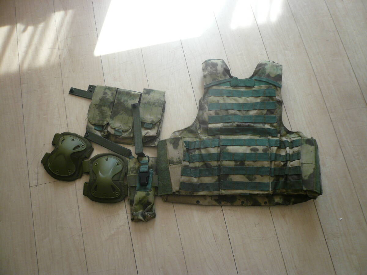 - 即決有 4点組サバゲセット チェストリグ タクティカルベスト プレートキャリア エルボーパッド マガジン/ラジオポーチ A-TACS FG