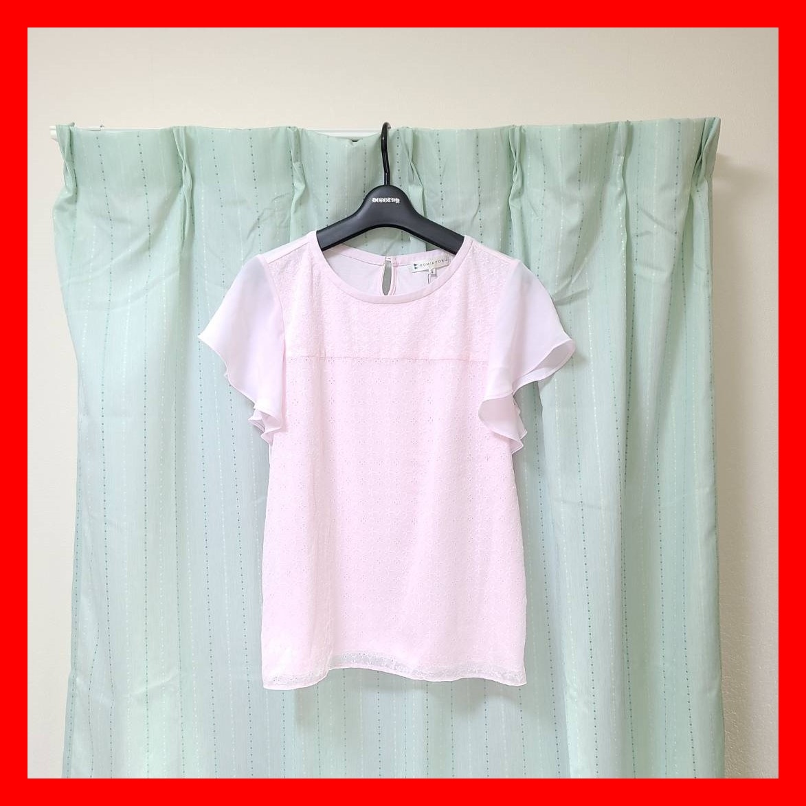 - 【新品未使用】組曲 レース刺繍 袖フリル ブラウス 淡いピンク