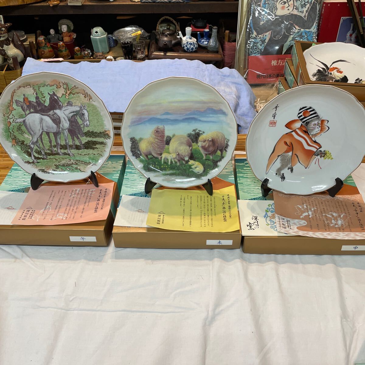 - 佐賀有田焼深川製磁 干支飾り皿 午 未 猿の三点です。 皿立て付き