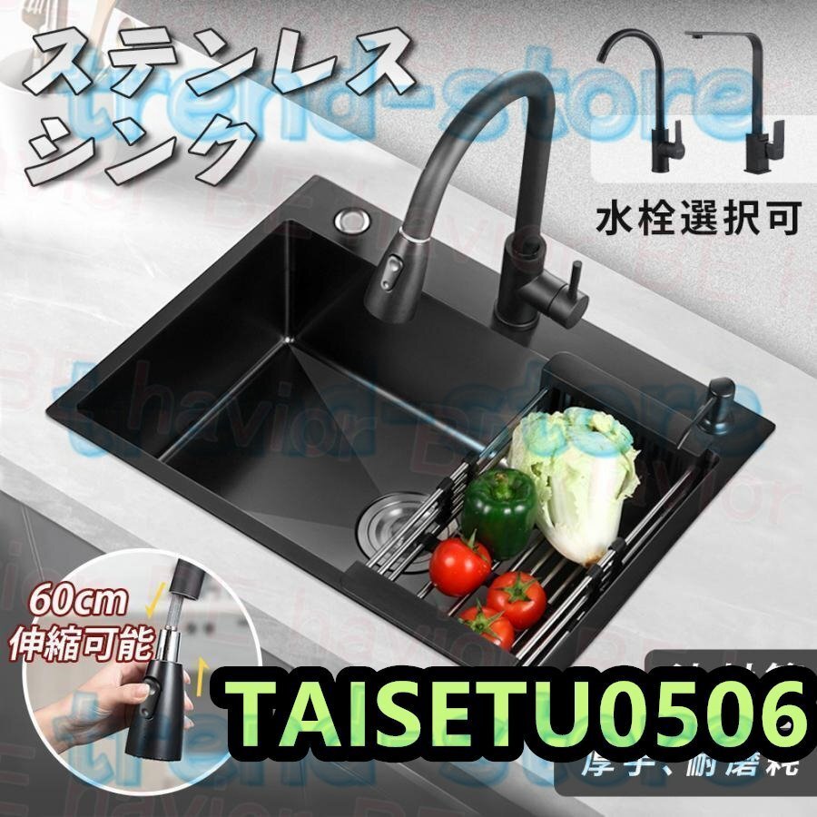 > シンク ステンレス 流し台 DIY キッチン ステンレス製 SUS304 ナノコーティング 黒色 油対策 耐摩耗 手入れやすい 台所 ゴミ受け 蛇口