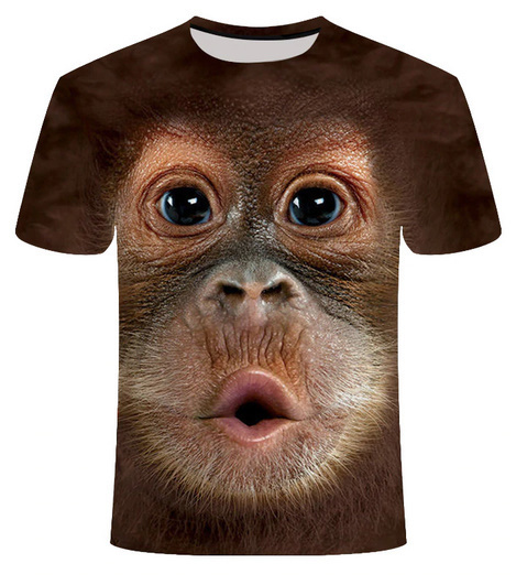 - LDL209 # 3Dプリント オランウータン画 おもしろTシャツ ネタT 動物柄 半袖 トップス S~6XL サイズ選択あり