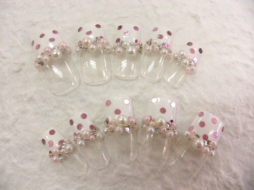 - ・(定型外orクリックポスト発送込み) フレンチにメタルホロでドットのネイルチップ ジェル使用作品