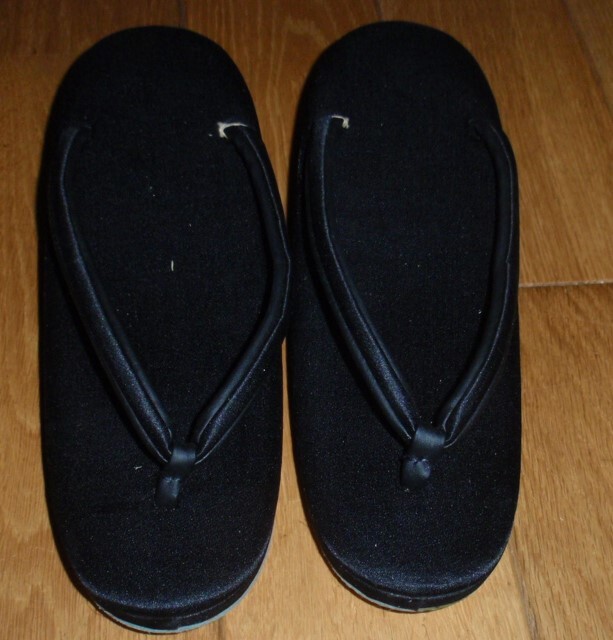 - 織物調表の草履/黒系/正絹100%/23.5㎝