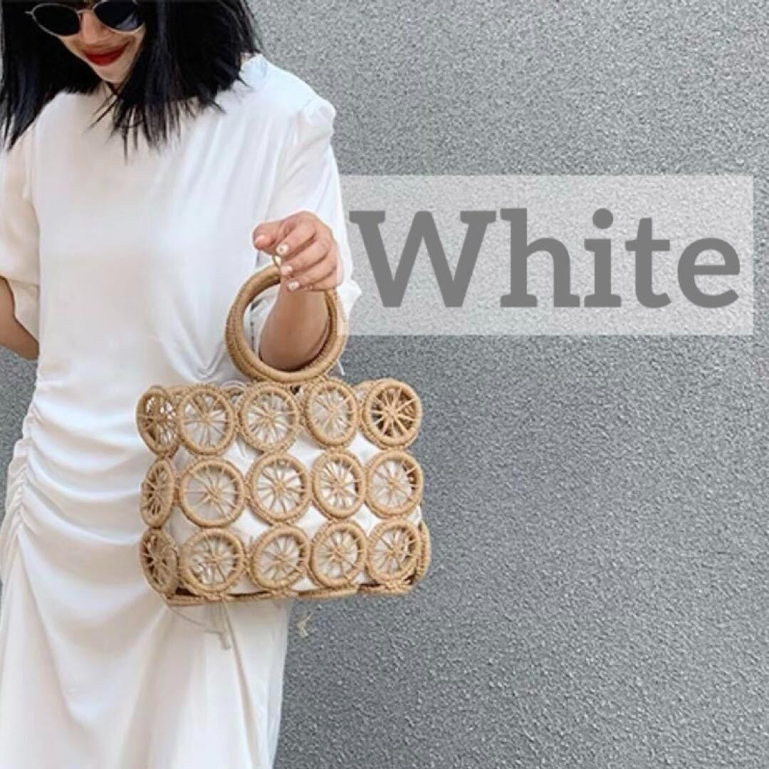 - カゴバッグ バッグ 巾着 付き 鞄 カバン ハンドバッグ ハンドバッグ ホワイト