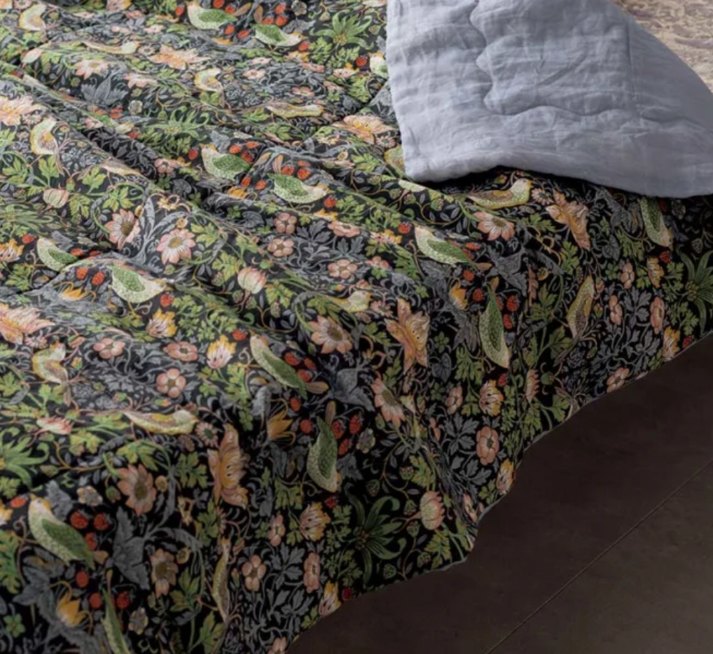 - ウィリアム・モリス「いちご泥棒」柄のリネンケット 麻素材