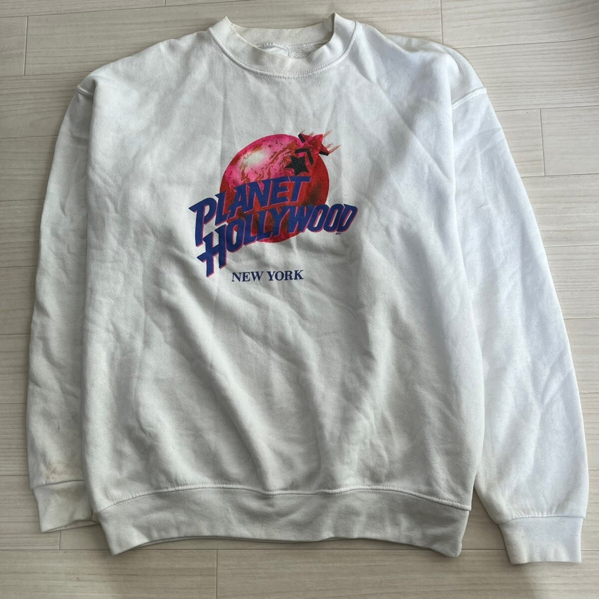 - PLANET HOLLYWOOD プラネットハリウッド アメリカ製 USA スウェット ロゴ入り トレーナー ホワイト サイズL