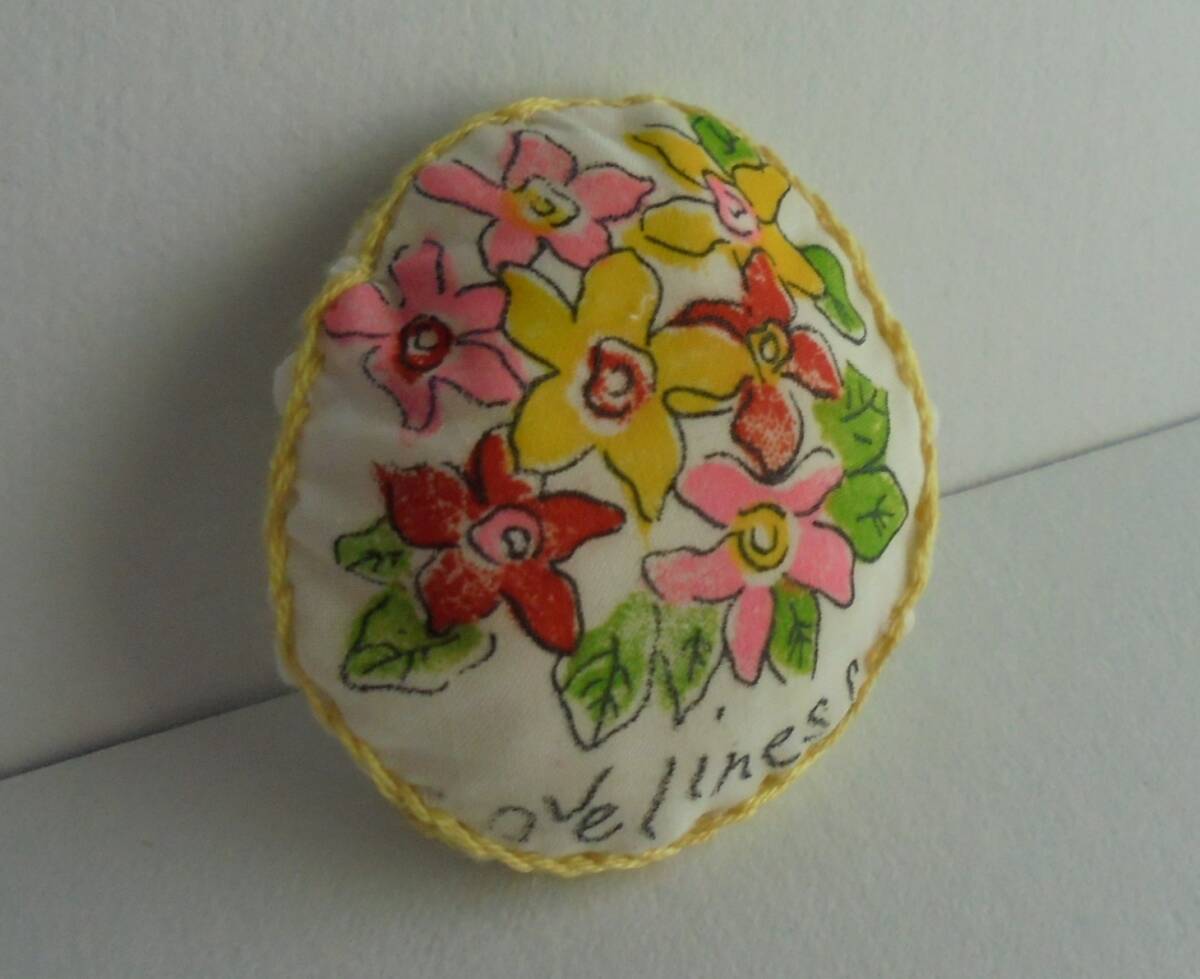 - ♪ ハンドメイド ブローチ レトロ アイロンプリント 花柄 周りに刺繍 綿入れ
