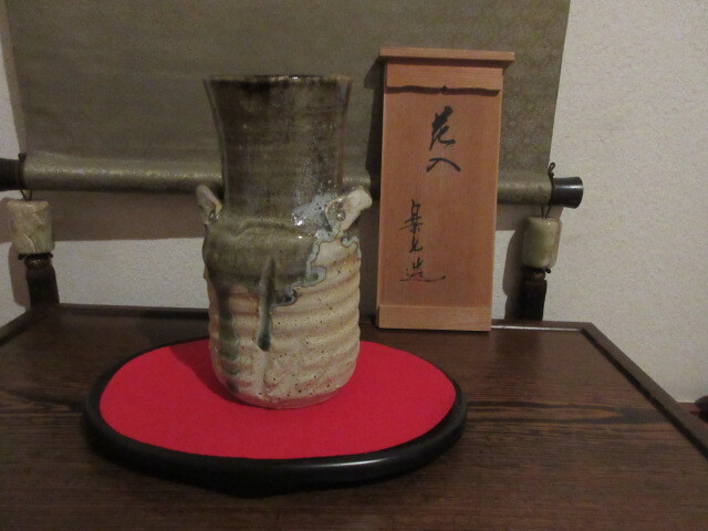 > ■【楽七造】常滑焼■代表作品!大作!陶磁器 ■花器/花瓶■茶道教室/お茶会に是非!■釉薬の流れ&自然な薪の灰が生み出す素敵な世界観!