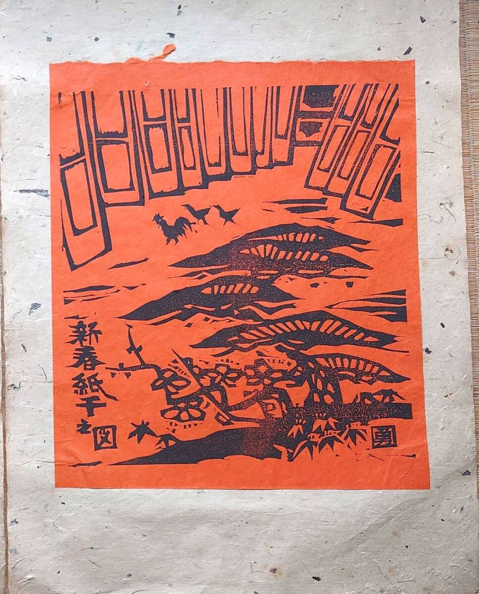 - f24060626〇和紙木版 紙漉 新春紙干之図 勅題 紙にちなみ 愛沢 勇 京都 長谷川 昭和39年〇和本古書古文書