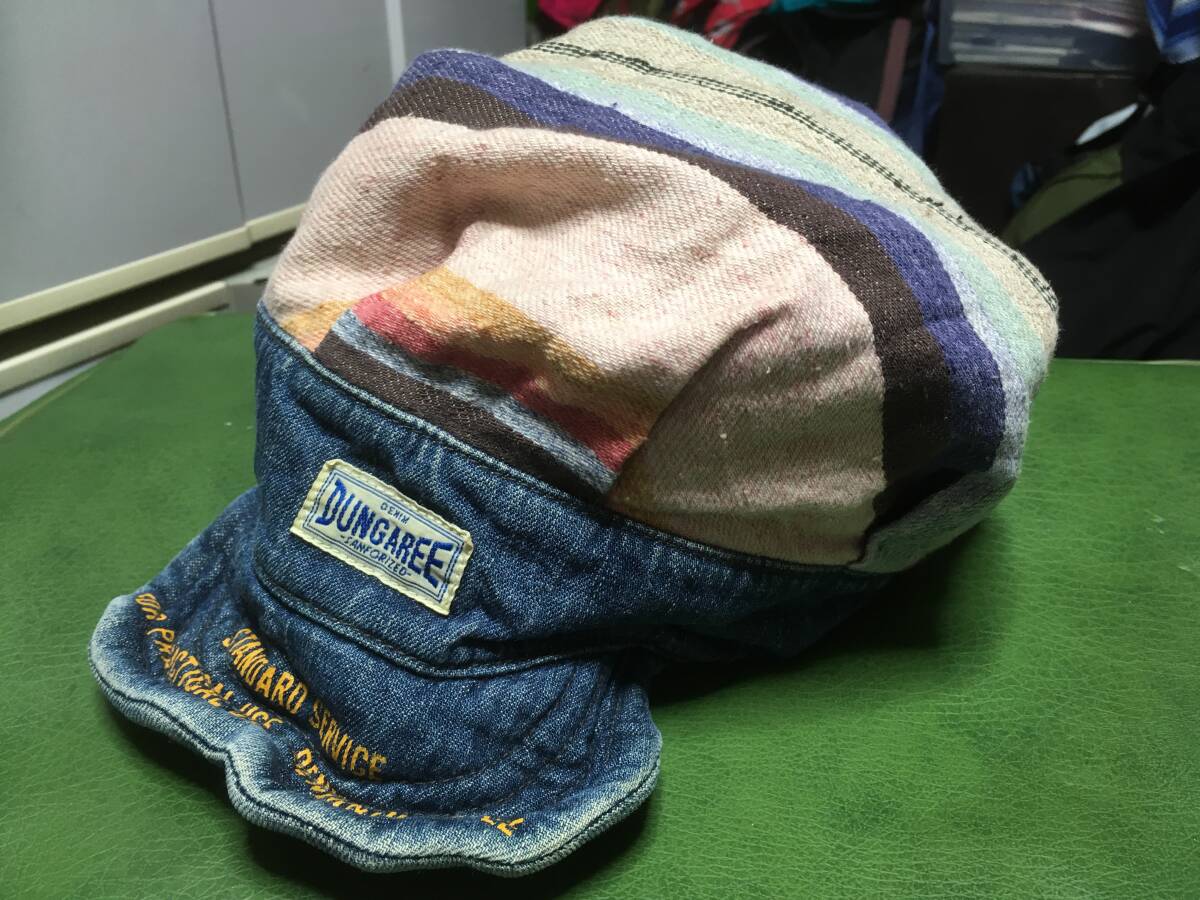 - 2407デニム&ダンガリーDENIM DUNGAREEセラペ ボーダー生地×デニムWORKワークCAPキャップ54帽子FITHフィスRAILROADレイルロード ドゴール