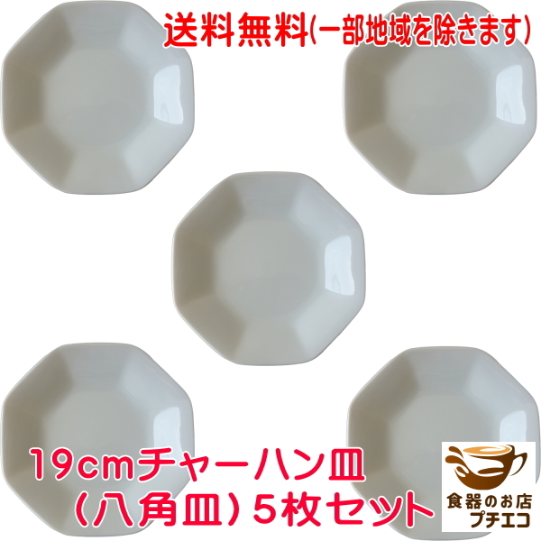- 送料無料 19cm チャーハン 皿 5枚セット 中華 八角皿 白 レンジ可 食洗機対応 日本製 美濃焼 業務用 中華皿 中華食器 セット 炒飯 酢豚