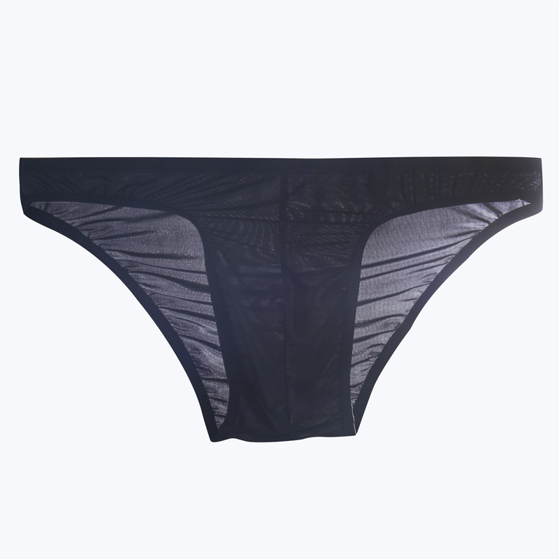 - ★メンズアイスブリーフ ローウエスト半透明 夏の通気性クールブリーフビキニパンツ★黒1
