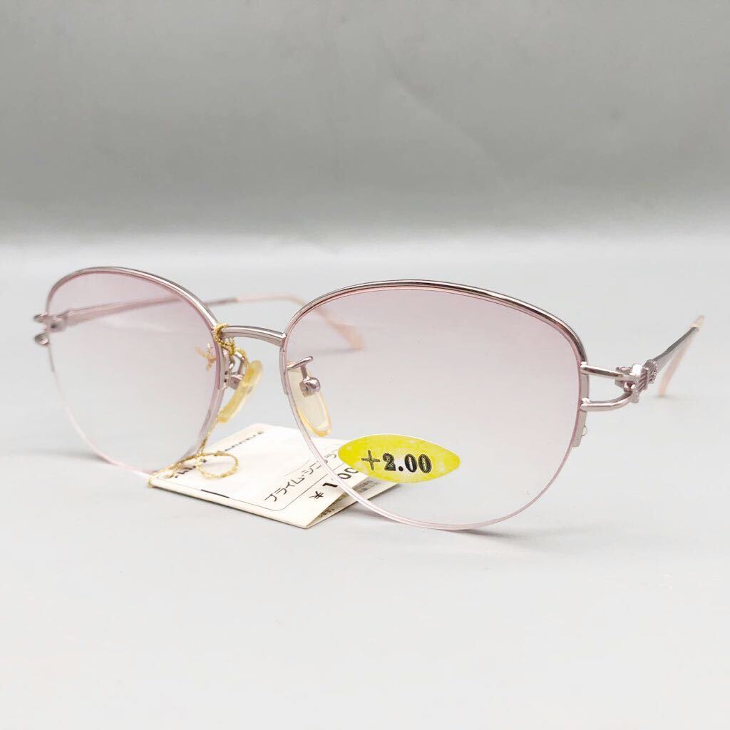 - 未使用品 シニアグラス リーディングレンズ 老眼鏡 +2.00 メガネ ピンク ゴールド メタル フレーム ハーフリム 拡大鏡 57□17-137 タグ付き