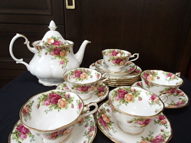 - ロイヤルアルバート・【オールドカントリーローズ】③ティーセット【ポット(1200ml)・C&S 5客・プレート5客】・未使用・箱なし・美品