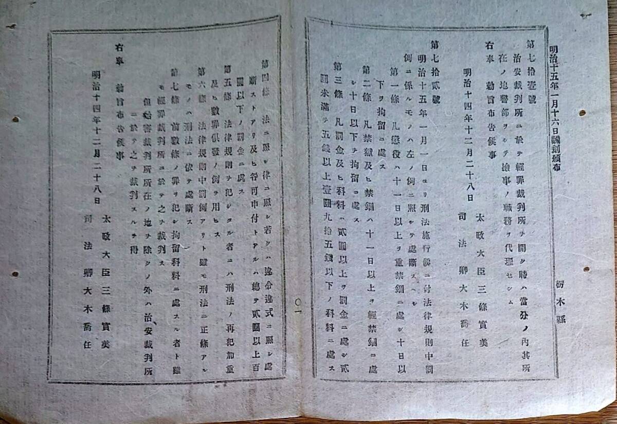 - f24071013〇明治布告布達 治安裁判所 栃木県 明治15年〇和本古書古文書