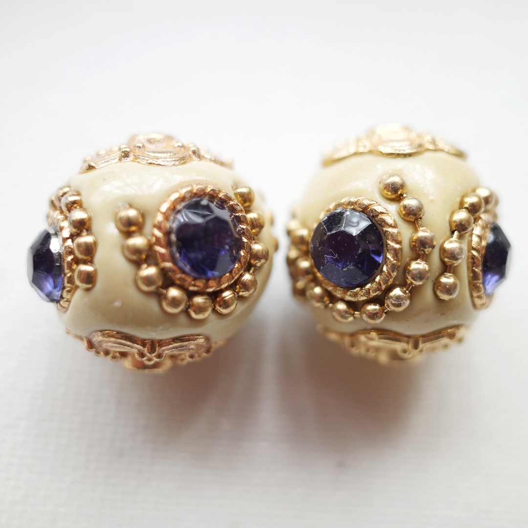 - ☆インドネシアビーズ☆ハンドメイド☆ラインストーン☆ラインストーン☆白×ゴールド☆大玉☆