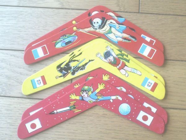 - 昭和レトロ【紙製ブーメラン3種(光速エスパー・黄金バット・ワタリ)・各2枚ずつ計6点】駄菓子屋玩具(昭和42年頃?)
