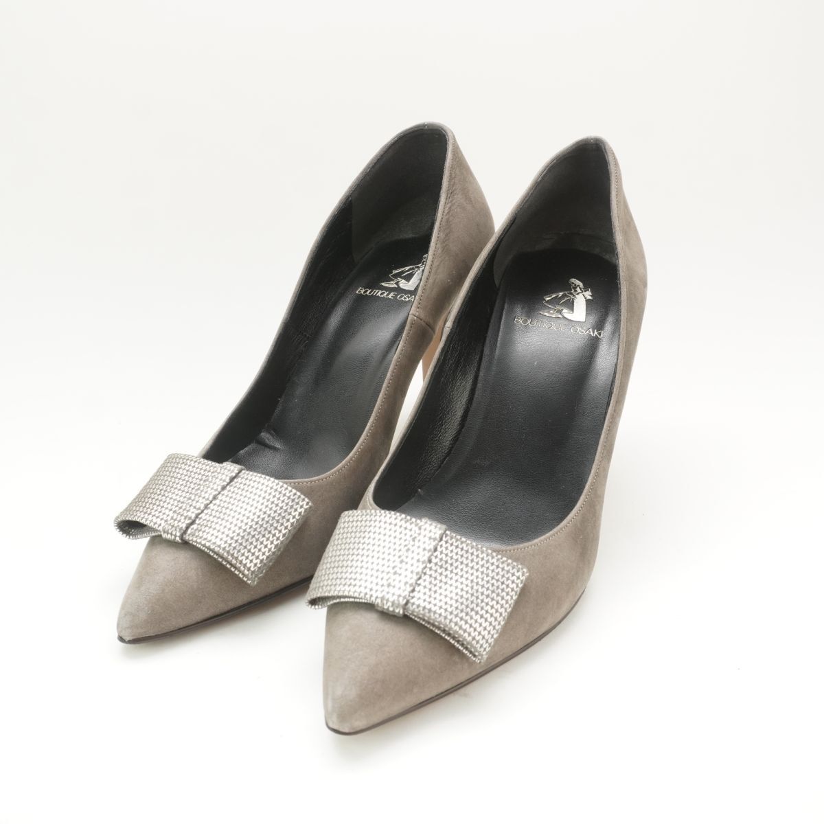 > BOUTIQUE OSAKI ブティックオーサキ 24.0 パンプス ヒール ポインテッドトゥ リボン スエード グレージュ/RC38