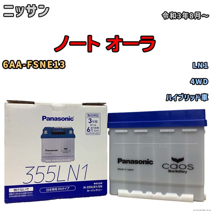 > バッテリー ニッサン ノート オーラ 6AA-FSNE13 令和3年8月~ パナソニック ENシリーズ N-355LN1EN ブルーバッテリー安心サポート付