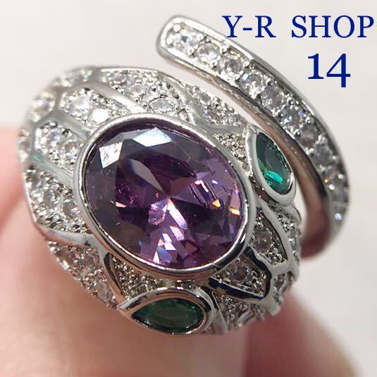 - 14号★アメジストとエメラルドのスネークヘッドゴージャスリング★レディース指輪シルバーアクセサリーカラーストーン新品宝石Y-R SHOP卸売