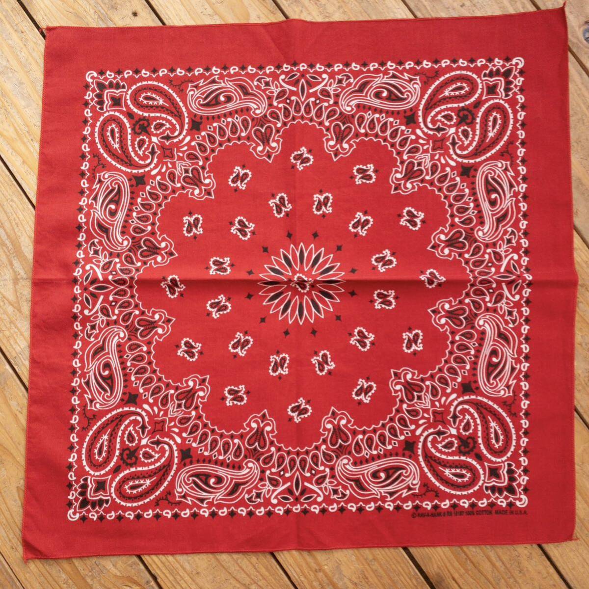 - 送料無料 Vintage ペイズリー柄 バンダナ ハンカチ アメリカ仕入れ RED 赤色 総柄 ボタニカル 花柄 アメカジ 小物 雑貨 ヴィンテージ A1436