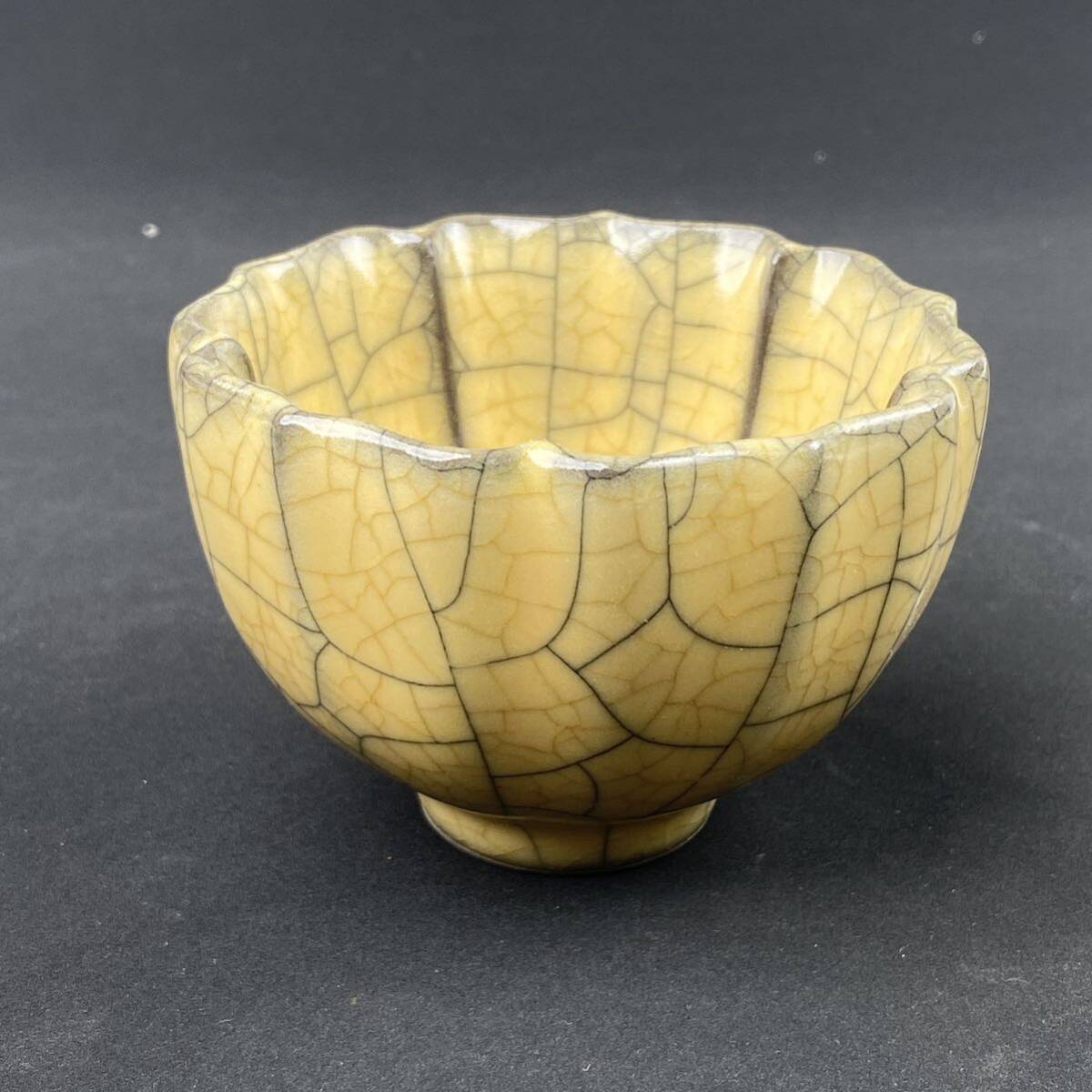 - 中国古美術 茶碗 茶道具 時代物 陶磁器 黄釉 宋代官窯 中国古玩 時代物 輪花 中国陶器 哥窯 古玩 陶芸