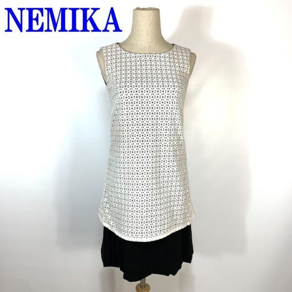 - ネミカ バイ レリアン ひざ丈ワンピース 総レース 白 NEMIKA by leilian ホワイト ブラック 裏地有 ノースリーブ黒 7 C9908