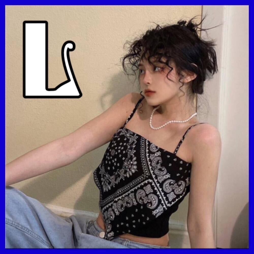 - ★人気 キャミソール ペイズリー柄 トップス トレンド 原宿 ショート丈 L
