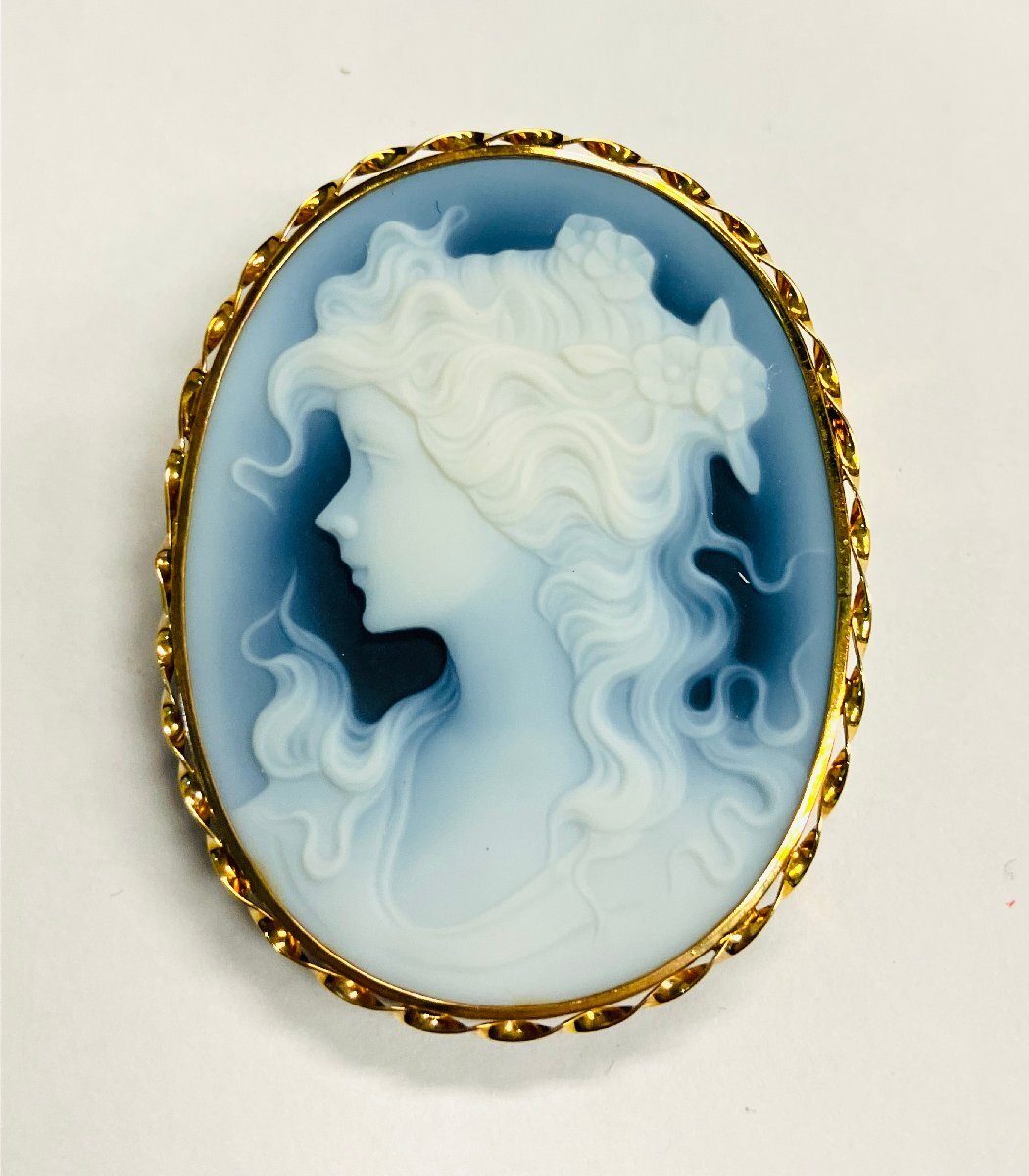 - K18 ゴールド オニキス カメオ ブローチ qoj.ZOD09