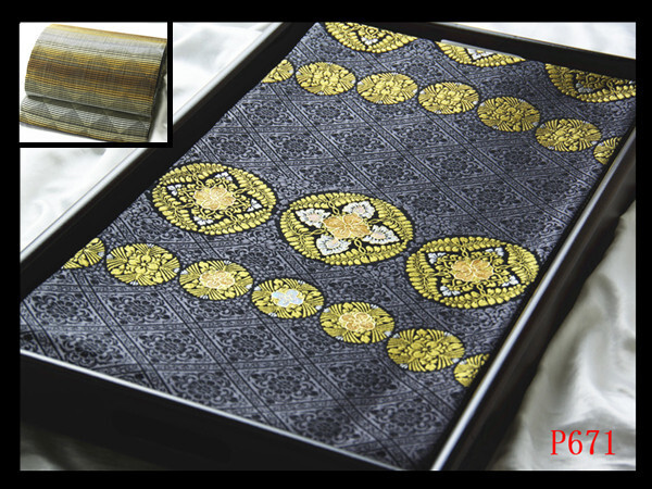 > P671厳選西陣 螺鈿 振袖可 浮線綾紋 鉄御納戸色地 幽玄な煌めき 両面正絹純金糸六通高級美術袋帯◇検◇簪着物名古屋帯帯締め