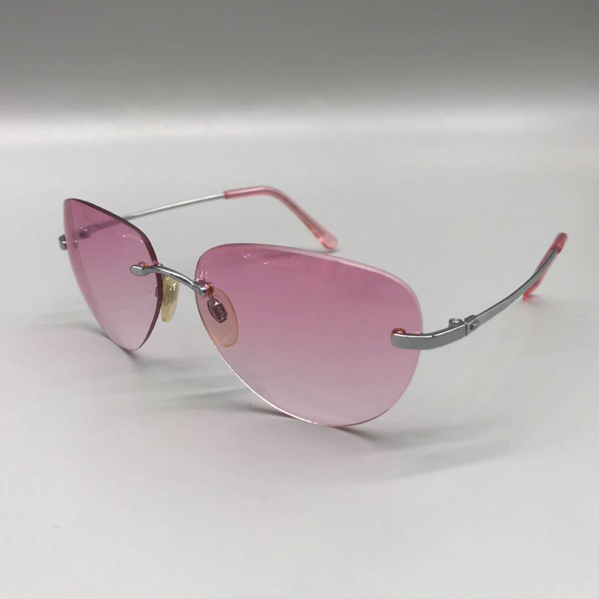 > ボストン型 サングラス YM-683-3 メガネ 眼鏡 メタル 金属 フレーム リムレス ピンク アイウェア レジャー ドライブ カジュアル 60□15-127