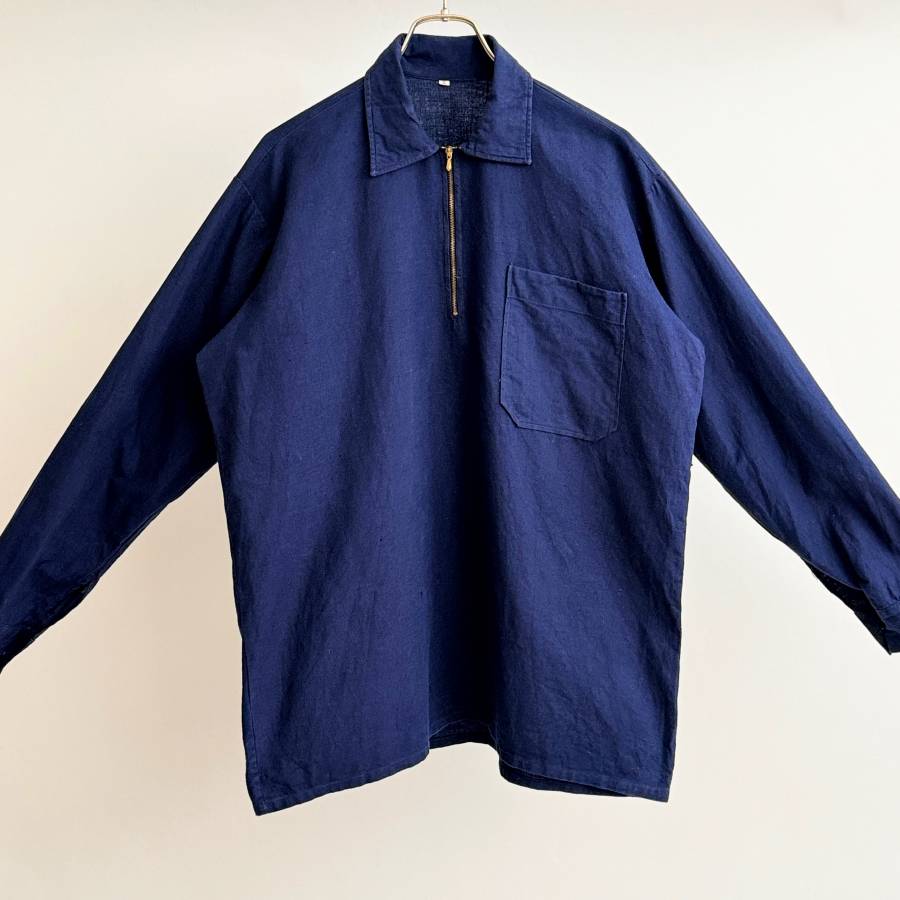 > 希少《 French Vintage / Indigo 》50s 60s 美品【 フレンチ ビンテージ インディゴ コットン プルオーバー シャツ 2 フランス 】
