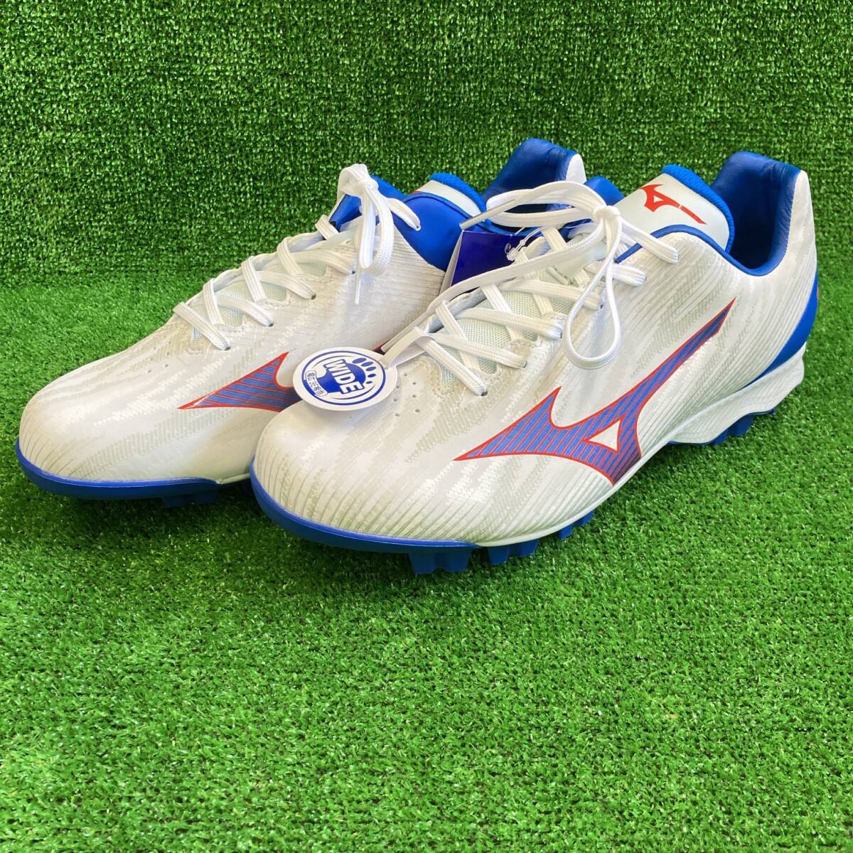 - 48 ミズノ ポイントスパイク ホワイト×ブルー 27.5cm 11GP242565 3E ウェーブライトレボ 新品
