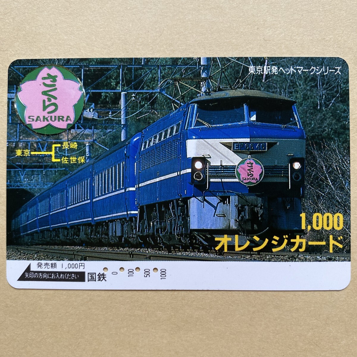 - 【使用済】 オレンジカード 国鉄 東京都発ヘッドマークシリーズ さくら号 東京-長崎・佐世保