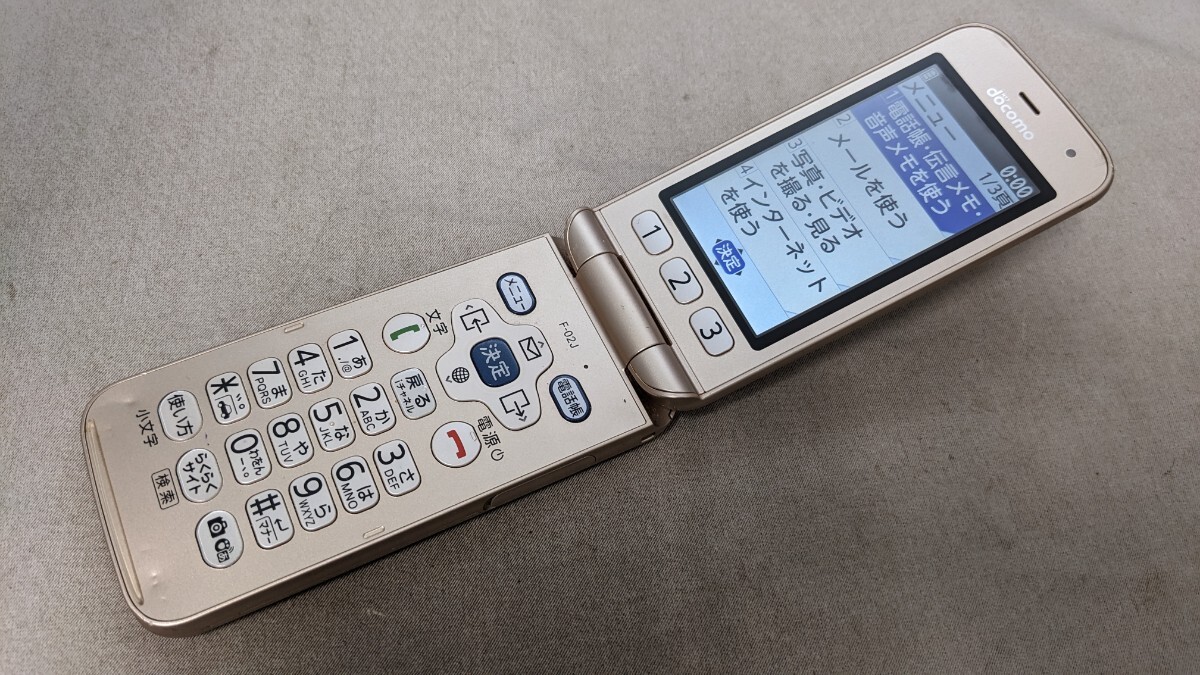 - D5131 docomo SIMフリー らくらくホン F-02J FUJITSU 4Gガラホ 簡易動作確認&簡易清掃&初期化OK 判定○ WebにてSIMロック解除手続受付済