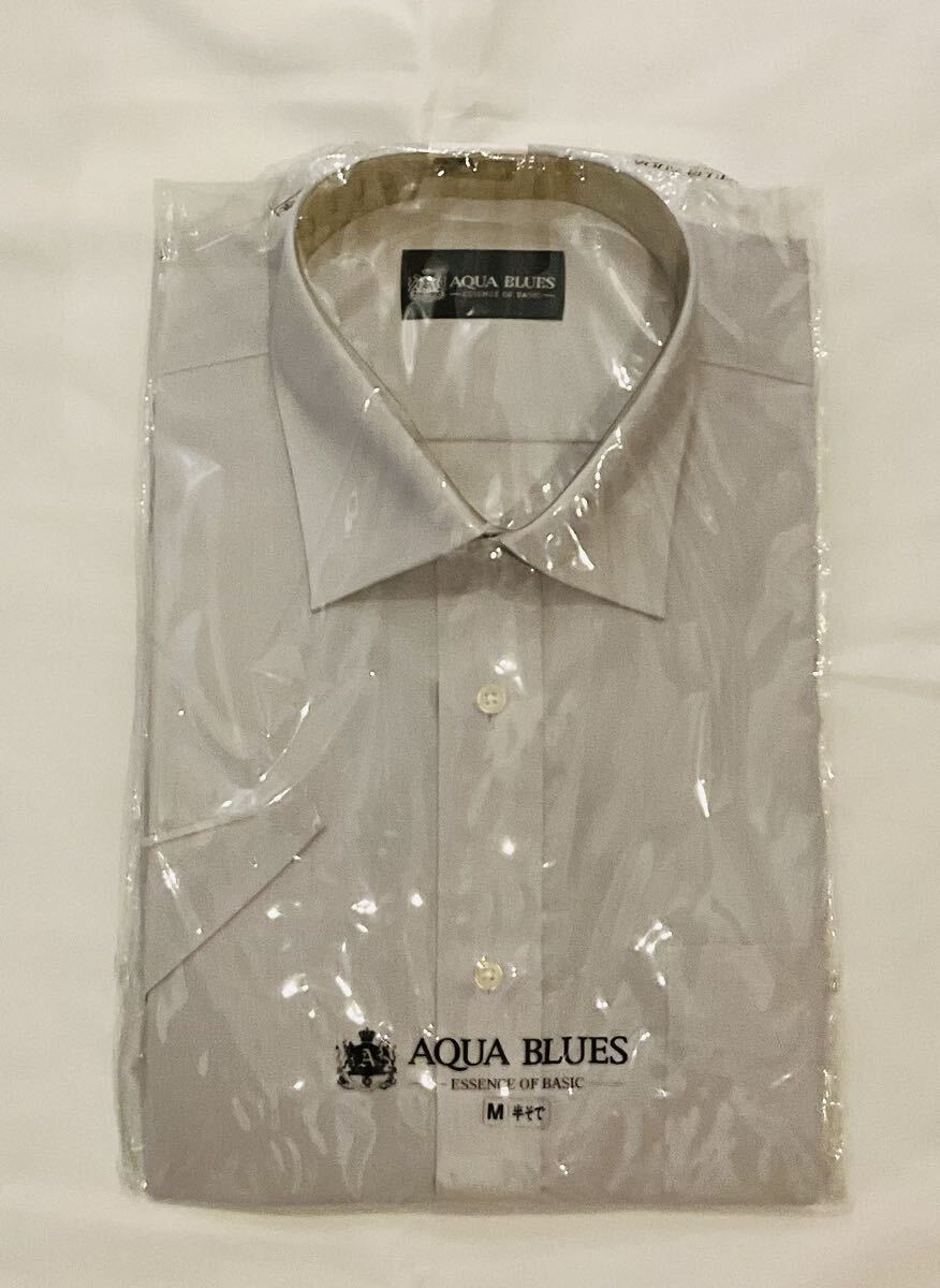 - 新品未使用品 袋入 AQUA BLUES 半袖 Yシャツ グレー Mサイズ 39 ワイシャツ カッターシャツ