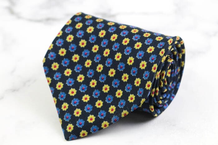 - エトロ シルク 総柄 花柄 ドット イタリア製 ブランド ネクタイ メンズ ネイビー ETRO