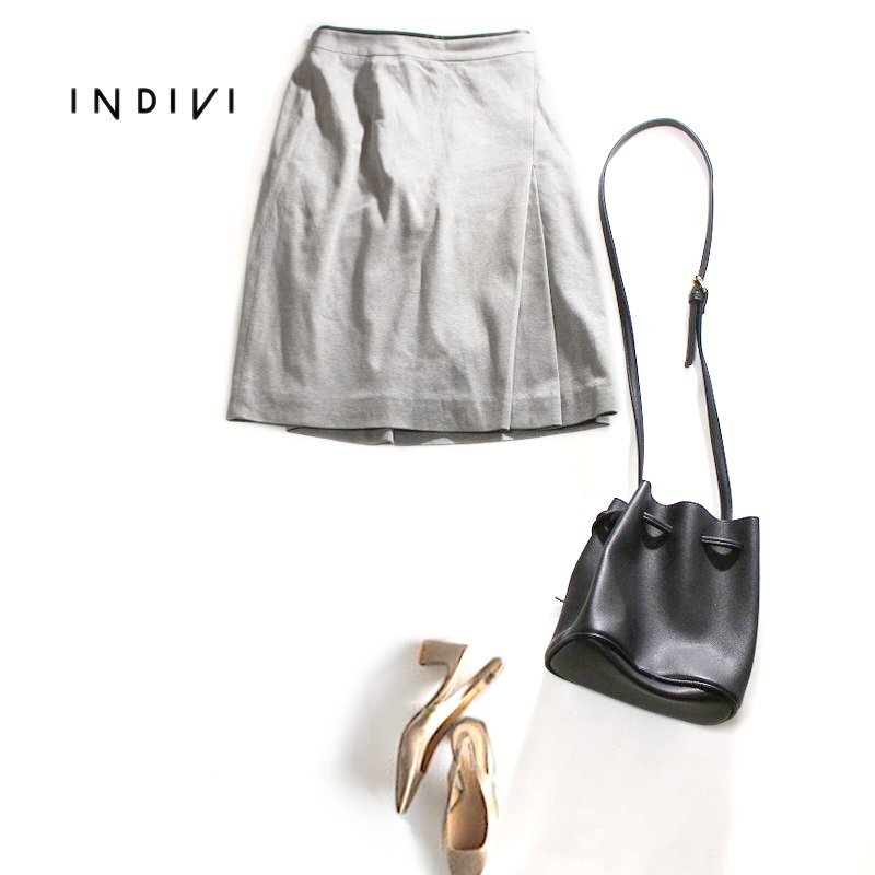 - 美品 インディヴィ INDIVI 株)ワールド 春 夏 さらり 楽 ジャージ― スタイリッシュ スーツ タイトスカート 36 グレー ビジネス フォーマル