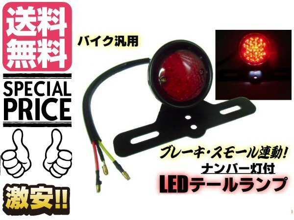 > バイク用 汎用 LEDテールランプ スモール⇔ブレーキ 連動 白色ナンバー灯&ステー付き アメリカン ビンテージ カスタム 送料無料/7