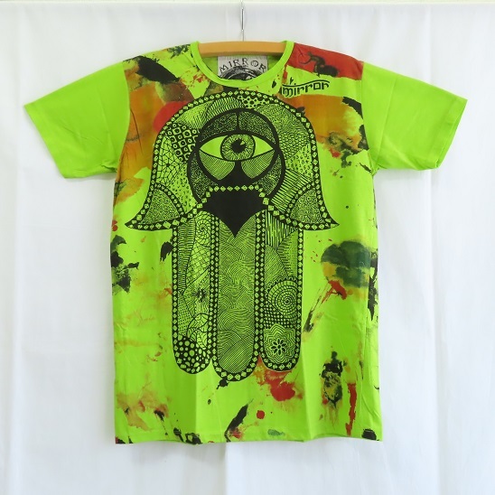 > 〓 新品 〓 ハムサ Tシャツ 〓 ファーティマ ファティマ フェス エスニック アジアン 黄緑 男女兼用 おしゃれ 〓E202