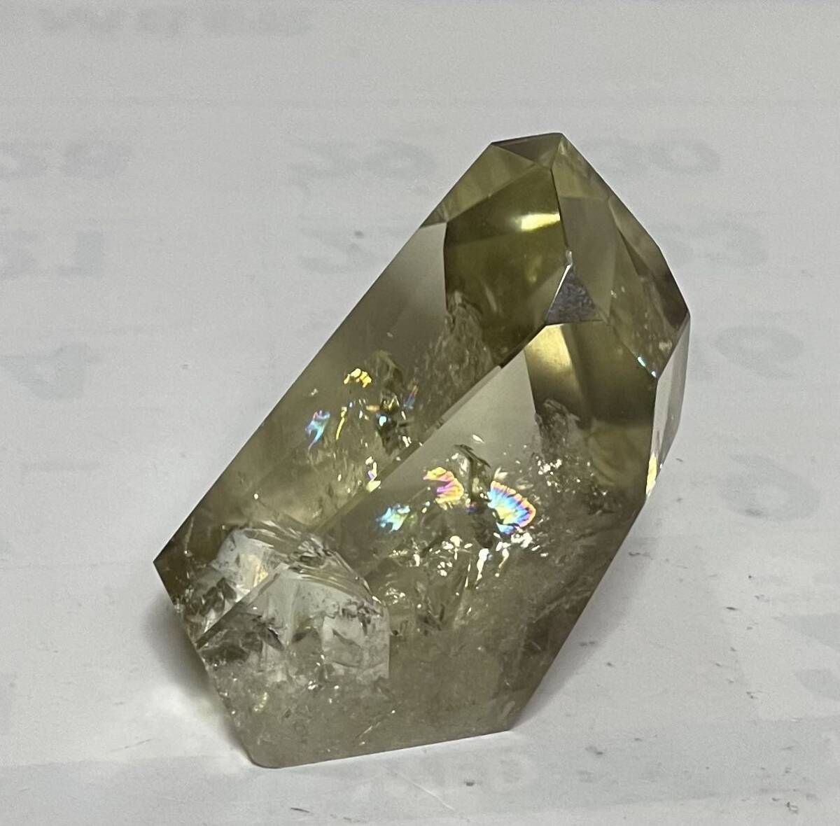 - アイリスクォーツ シトリン 010 レモンクォーツ 水晶 虹入 天然石 ブロックカット 置物インテリア パワーストーン 幸運 財運UP 巾着袋付き
