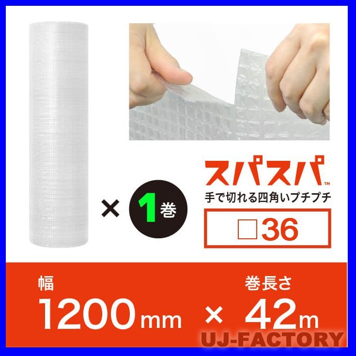 > 【3本以上で送料無料/法人様・個人事業主様】川上産業/話題の新商品★スパスパ(手で切れる四角いプチプチ)★1200mm×42m (□36) 【1本】