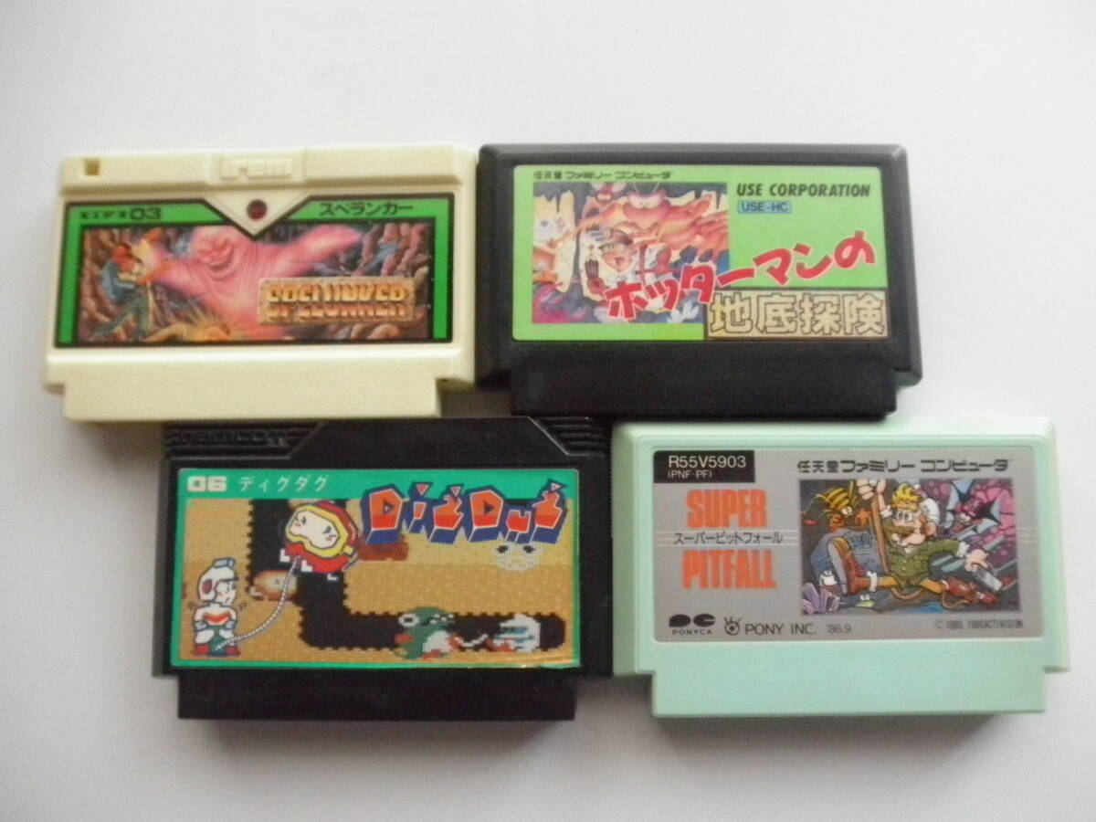 > ●FCソフトセット ディグダグ、スペランカー、スーパーピットフォール、ホッターマンの地底探検 初期起動確認済