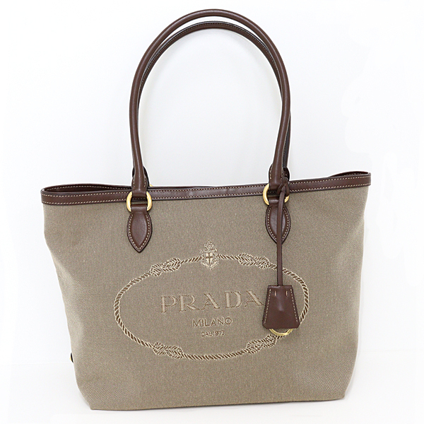 > プラダ PRADA ロゴジャガード トートバッグ ショルダーバッグ LOGO JACQUARD キャンバス ブラウン 【中古】Sランク