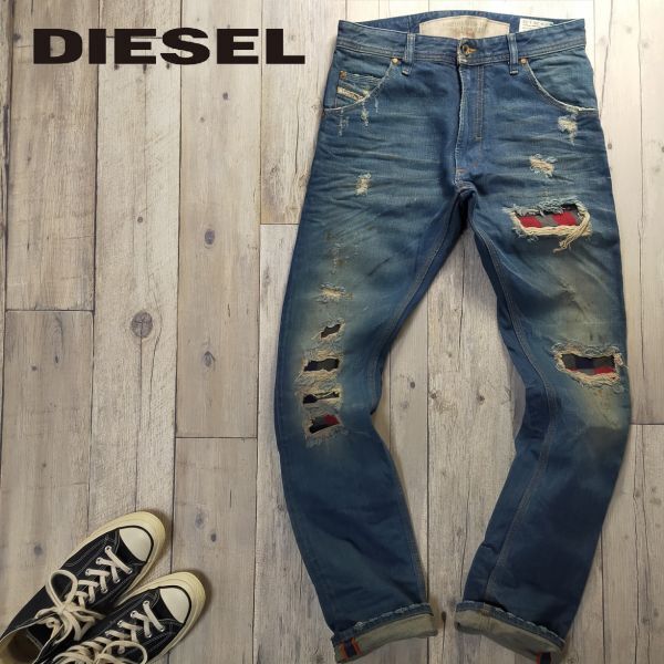 > ☆DIESEL ディーゼル☆KROOLEY 東京渋谷店 200本限定 クラッシュ リペア加工 スリム デニム パンツ W28 LIMITED EDITION S382